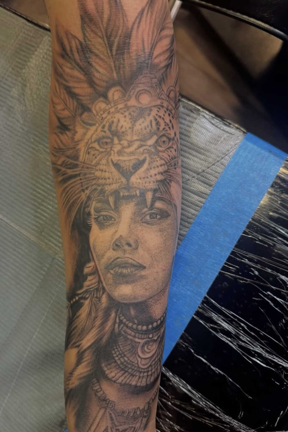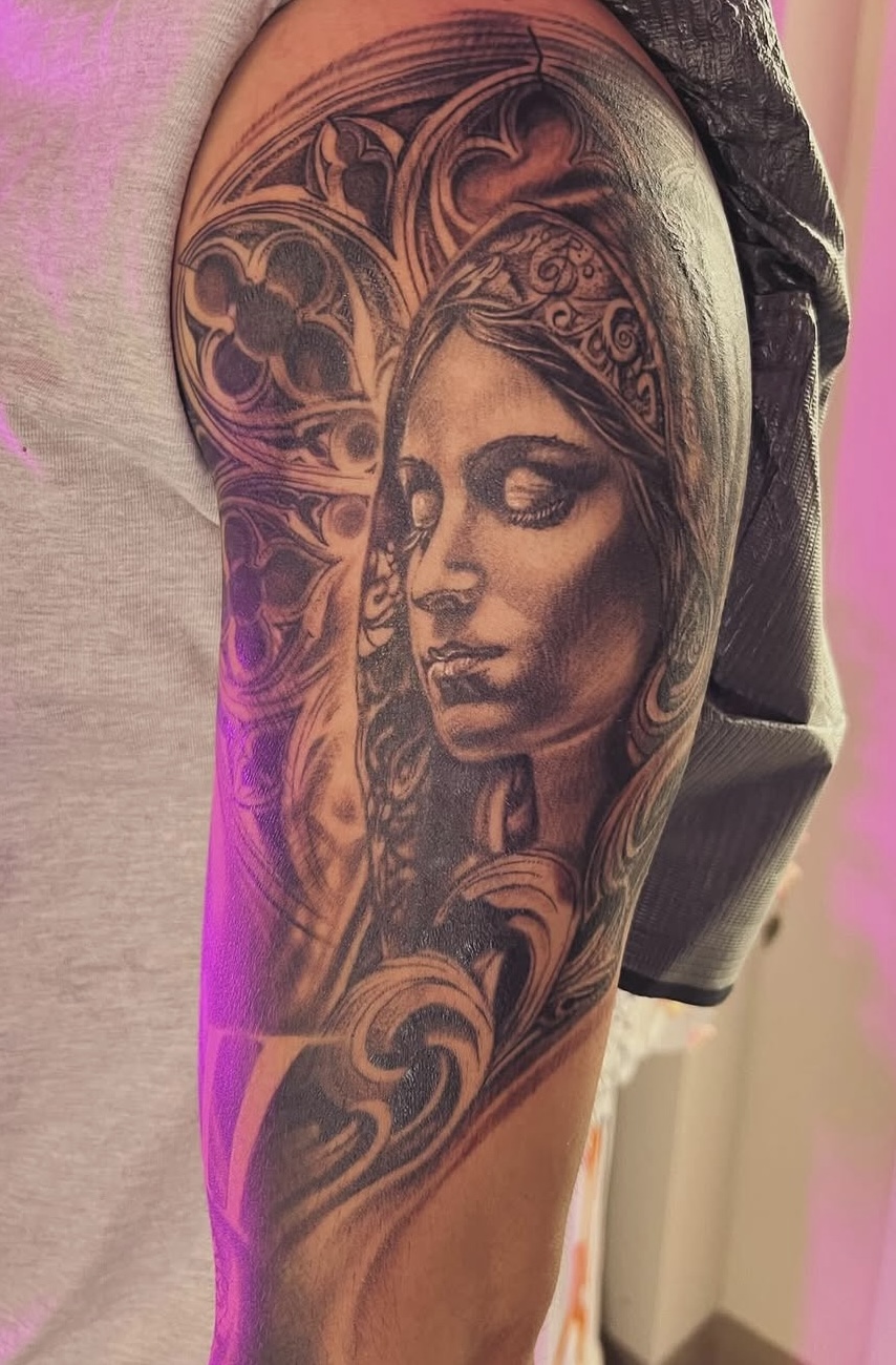 I’m Jesse, with over 15 years of experience specializing in large-scale custom tattoos and black and gray realism. My work is all about bold detail, smooth flow, and lasting impact — every piece is designed with intention and executed with precision. Although my books are usually tight, I’m always open to working with new clients who value high-quality, custom tattooing. From full backs and sleeves to multi-session pieces, I focus on creating tattoos that stand the test of time. I also mentor artists and push my team to keep raising the bar. Old town ink isn’t just a studio — it’s a space built for serious tattoo collectors and artists who respect the craft. Booking is open — get in touch and let’s plan your next piece.